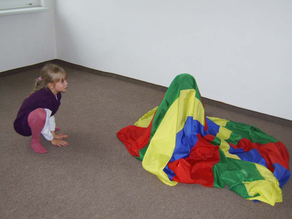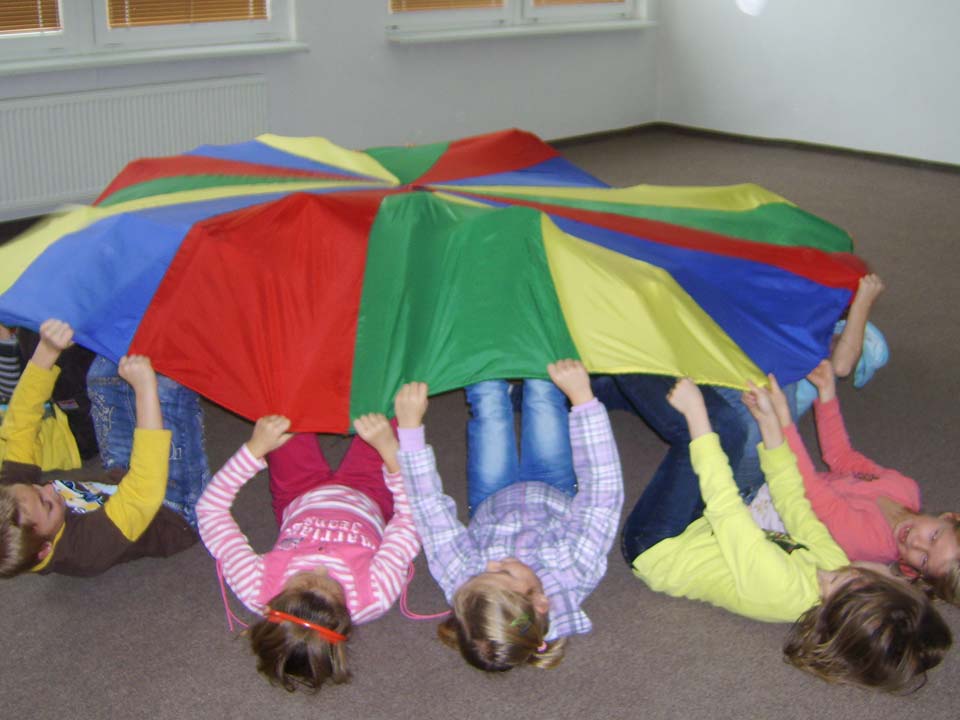Mezi velmi oblíbené aktivity patří hry s padákem. Padák je vlastně kulatá plachta. Děti se v průběhu cvičení seznamují s padákem zrakem, dotykem a zároveň zlepšují své vnímání těla v prostoru.