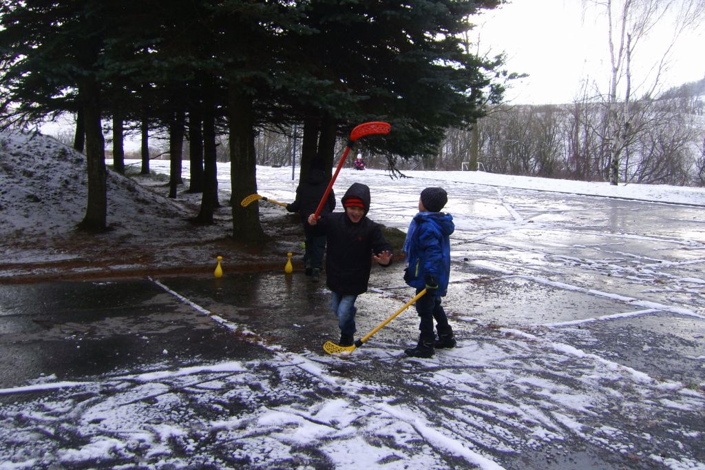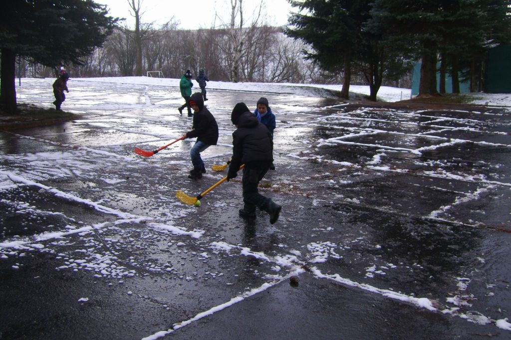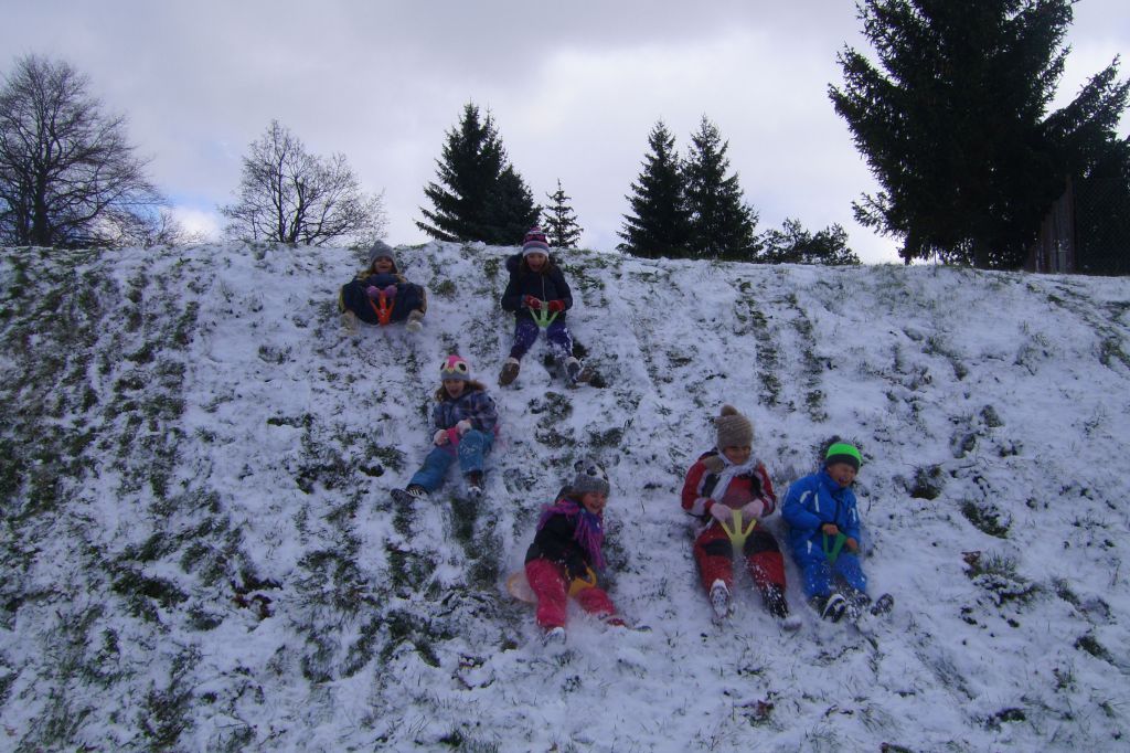 Několik málo bílých dní tohoto roku jsme využili k pobytu a hrátkám na školním hřišti.