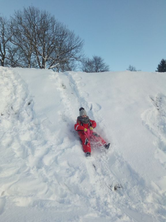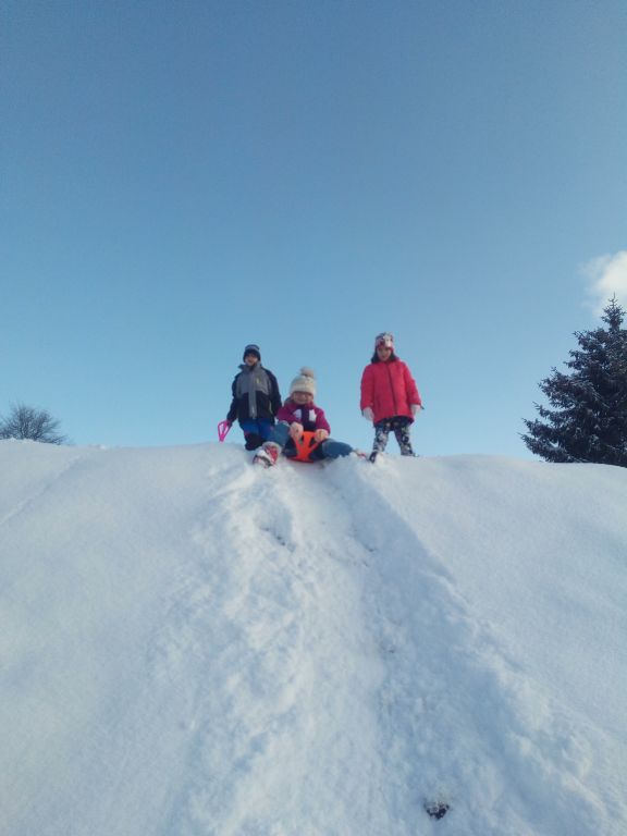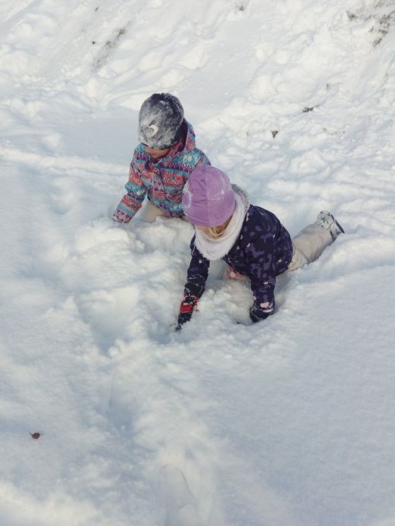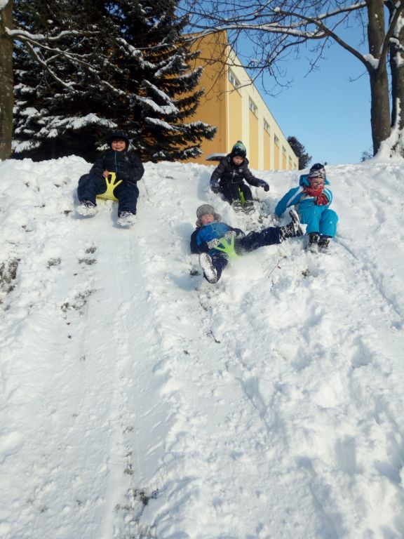 Celý prosinec byl velmi skoupý na sněhovou nadílku. V posledním týdnu před vánočními prázdninami jsme se konečně dočkali. Sníh nečekaně zasypal celý areál školy. Zasněžené svahy sloužily dětem k jízdě na lopatě, volná prostranství pak poskytovala prostor pro jednoduché stavby ze sněhu a pozorování stop.