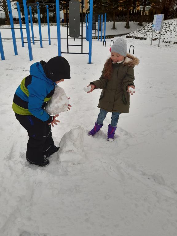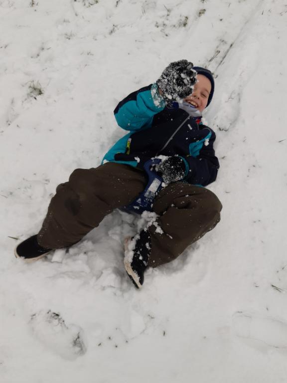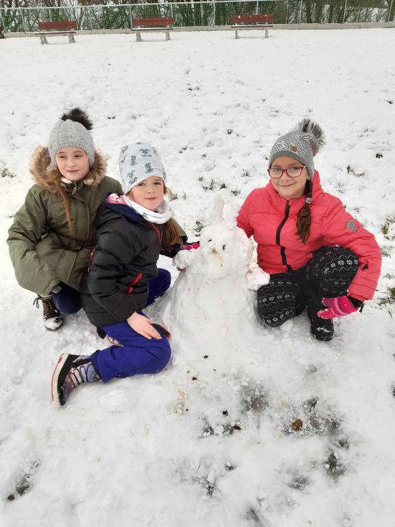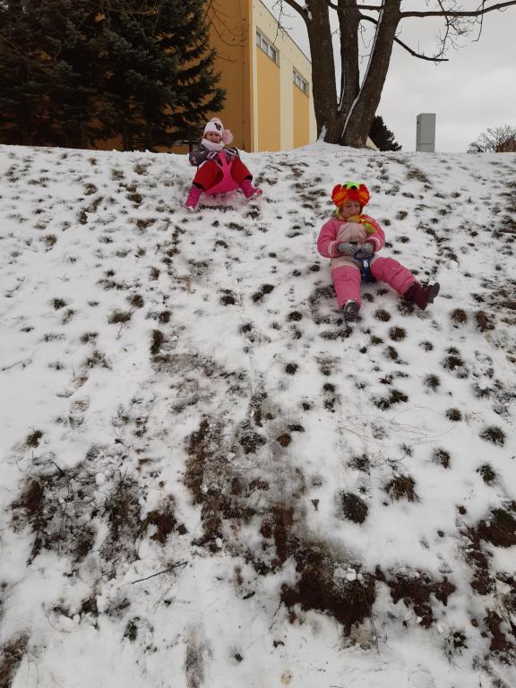 V únoru nás přece jenom potěšila malá sněhová nadílka, a i když foukal studený vítr, děti neváhaly ani minutu a rozběhly se stavět sněhuláky, jezdit na kopci nebo se jen tak válet ve sněhu.