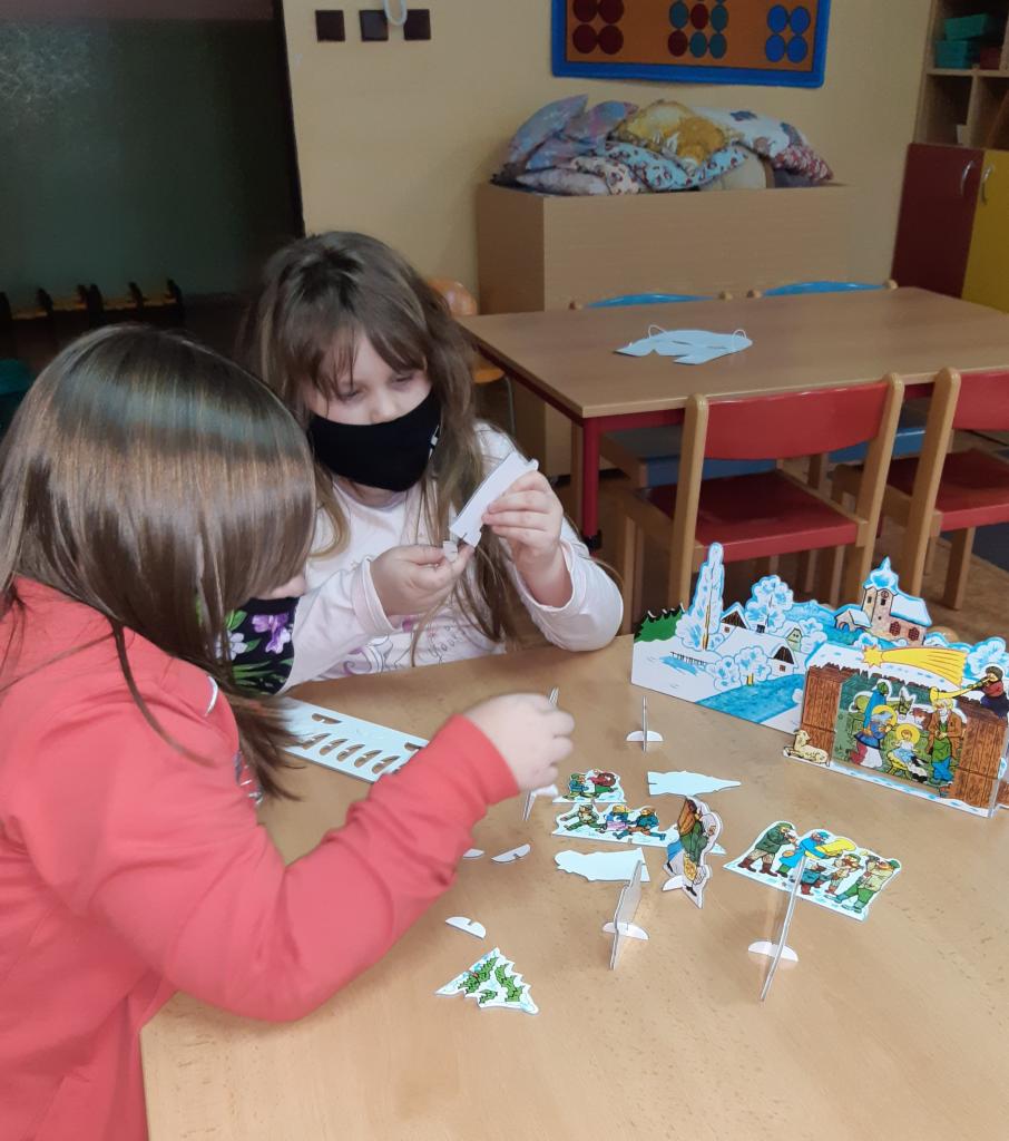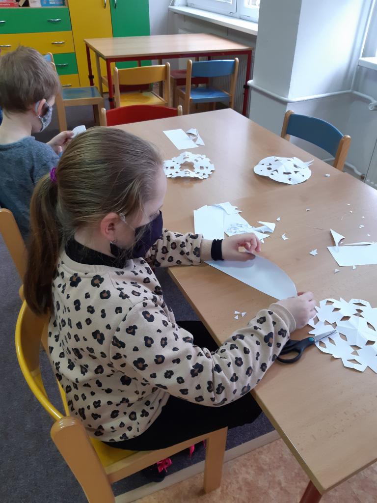 V prosinci, ještě předtím, než jsme s dětmi začali vytvářet nejrůznější obdoby postav Mikuláše, čerta a anděla, jsme nakreslili dopis Ježíškovi. Na začátku prosince jsme také společně vyzdobili hernu papírovými vločkami, vánočními stromky a ozdobami. V období adventu jsme si připomněli tradice českých Vánoc.