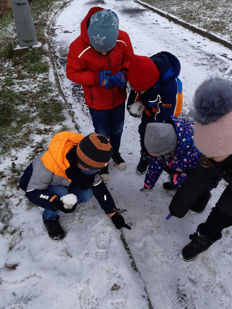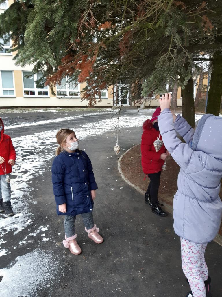 Při vycházkách jsme pozorovali stopy ve sněhu a nezapomněli jsme ani na přikrmování ptáčků.