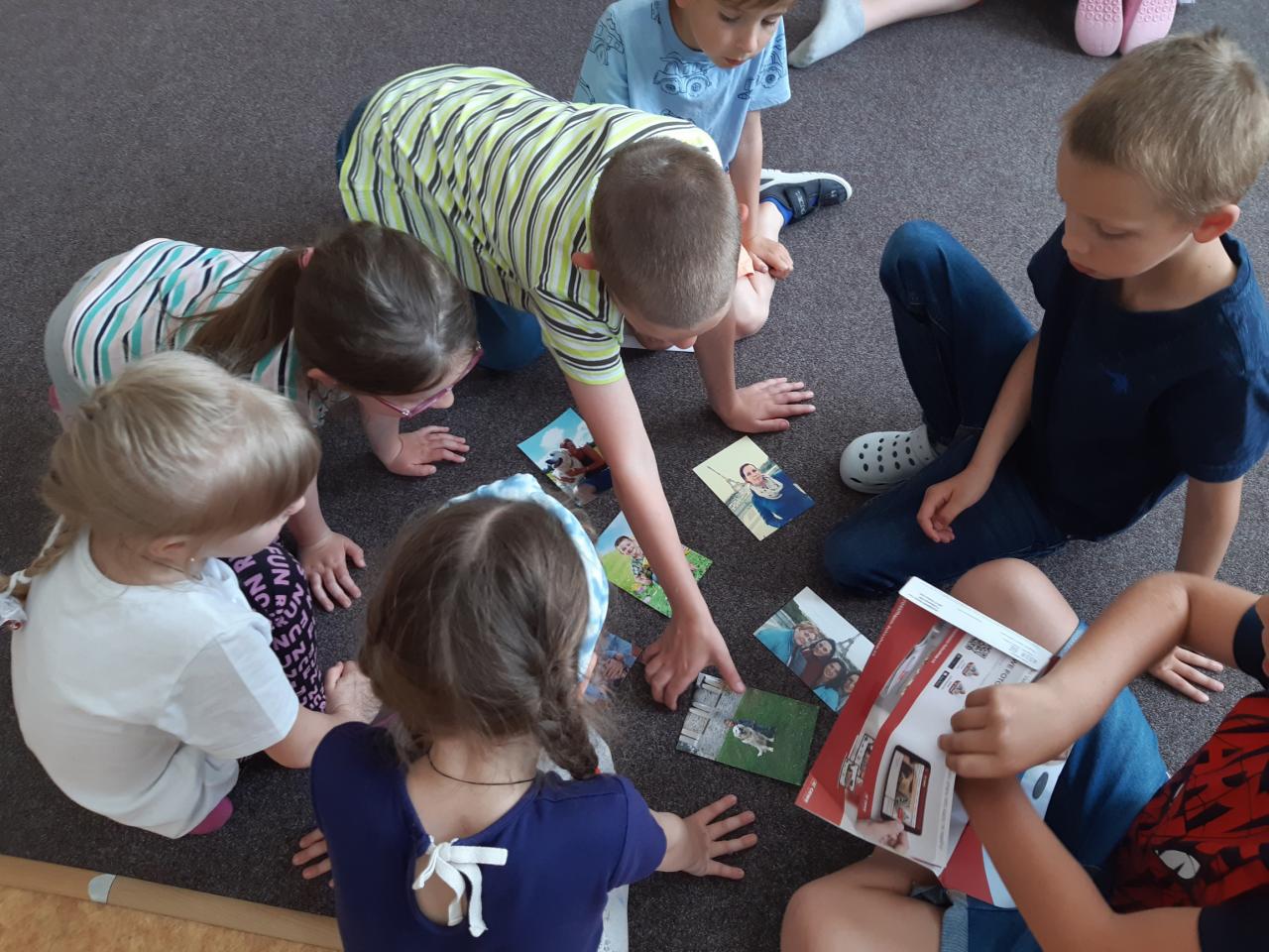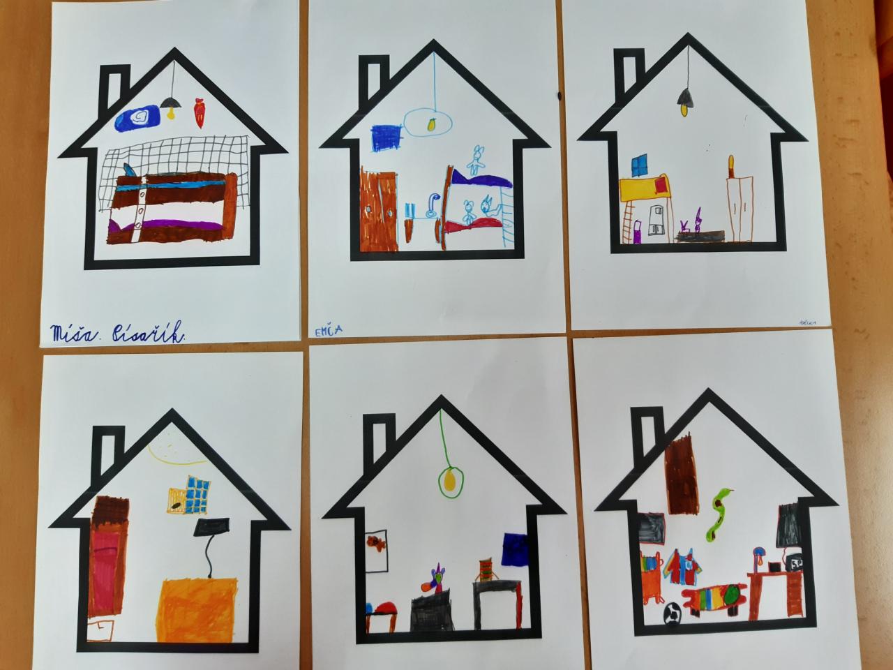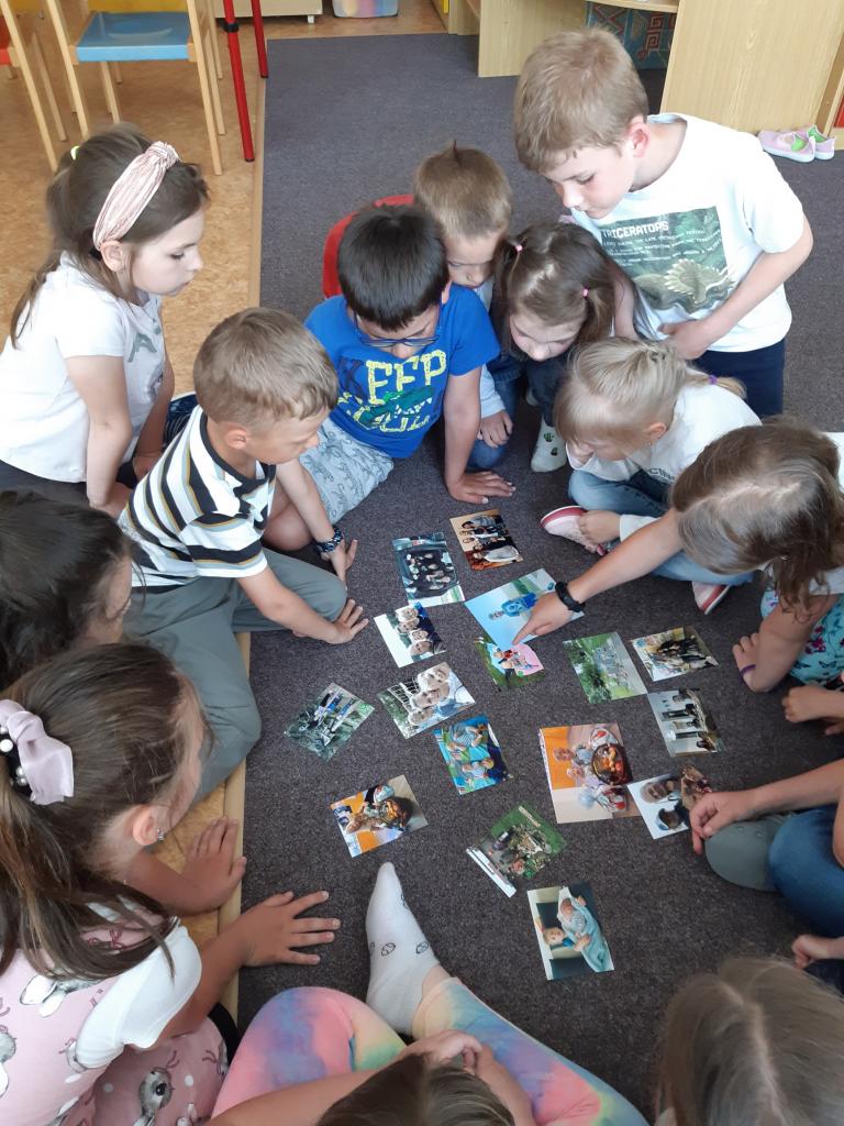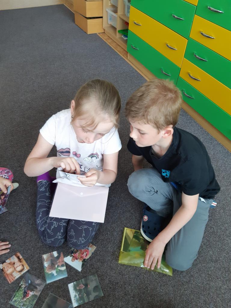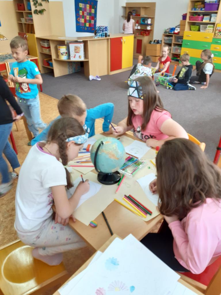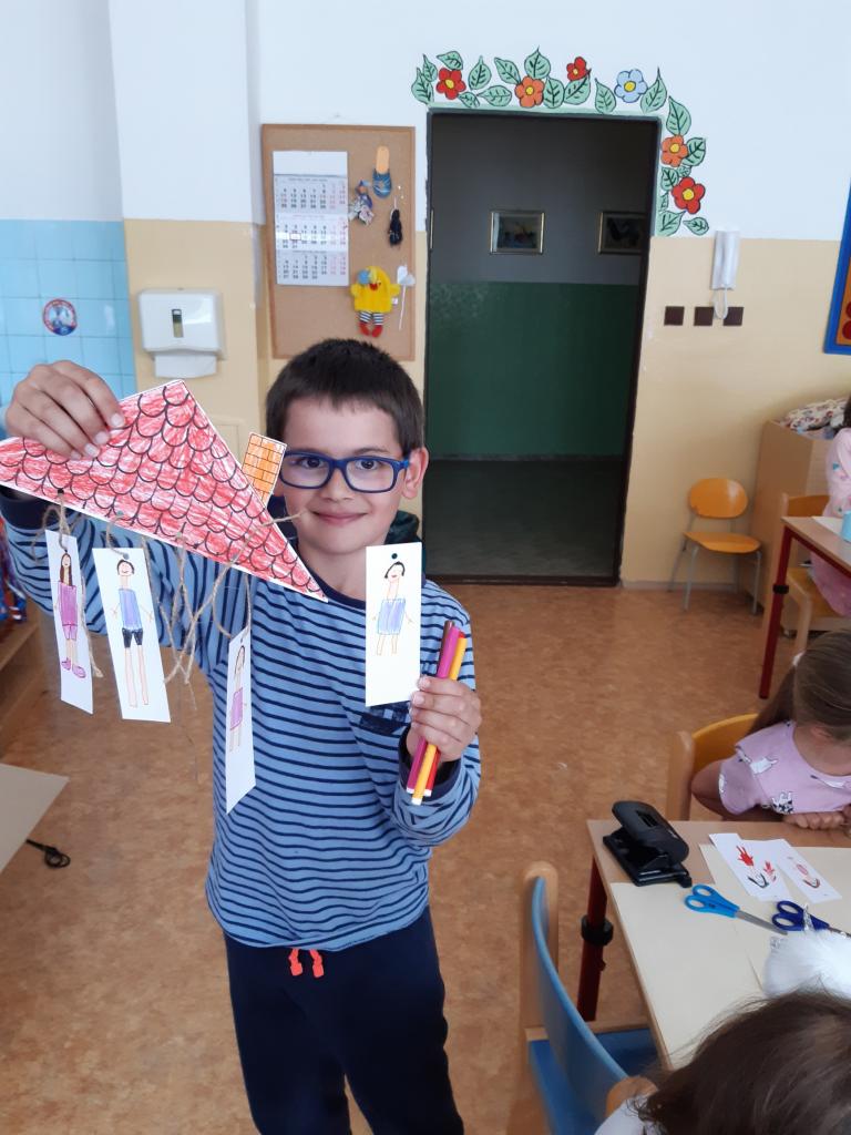V květnu slavíme také Den rodin. Vedeme rozhovory o rodině, sourozencích, prarodičích…, poté si děti zakreslily své nejbližší do jednoduchého rodokmenu, navzájem si ukázaly fotografie svých rodin, v pracovních činnostech si jednotlivé členy rodiny ztvárnily. Pozvolna jsme přešly k tématu Můj dům. Nejdříve děti popisovaly svůj dům a místo, kde bydlí s rodiči. Později formou různých her a pracovních listů zjišťují, že domov je i Česká republika a vlastně celá naše planeta.