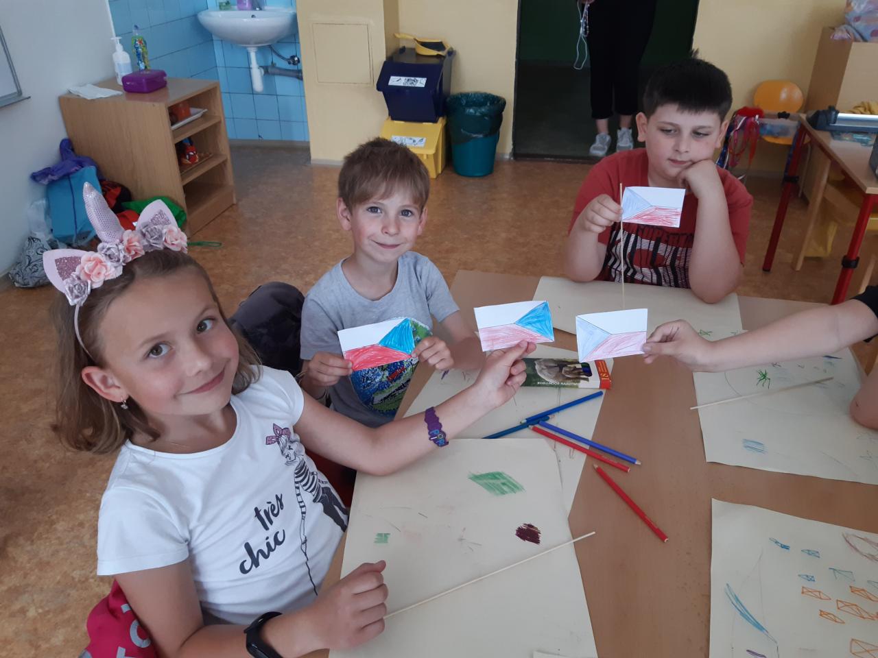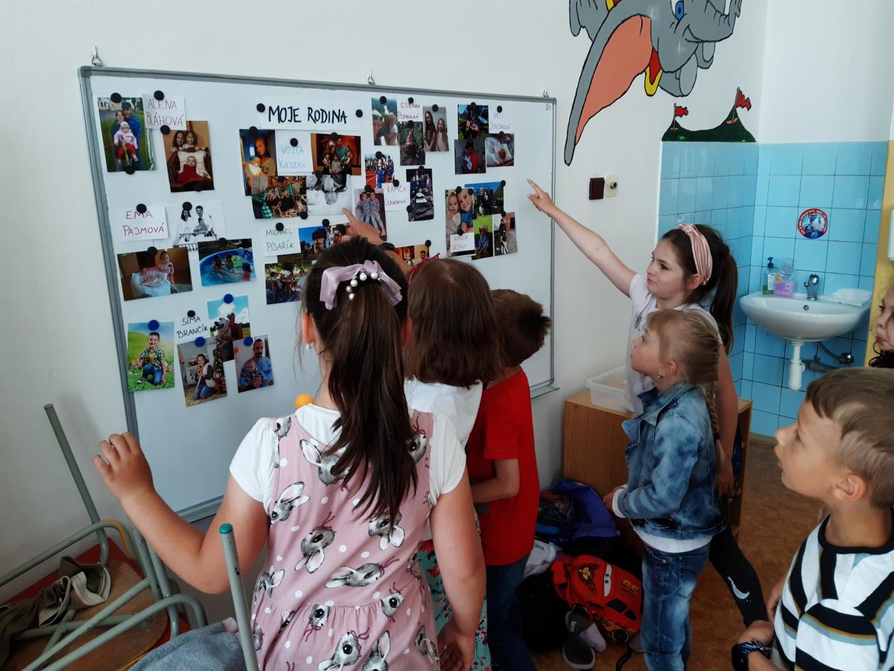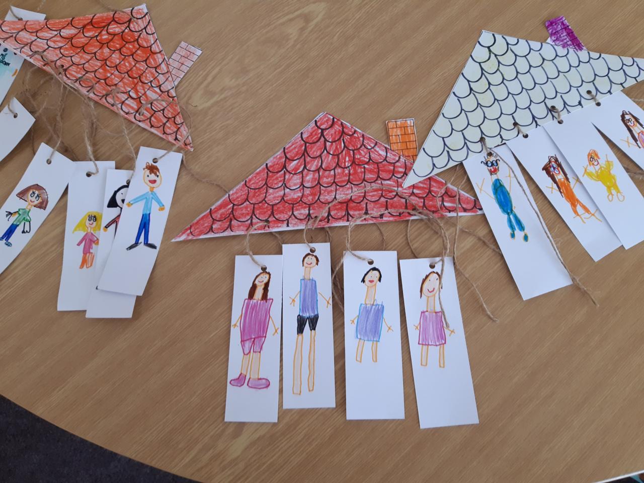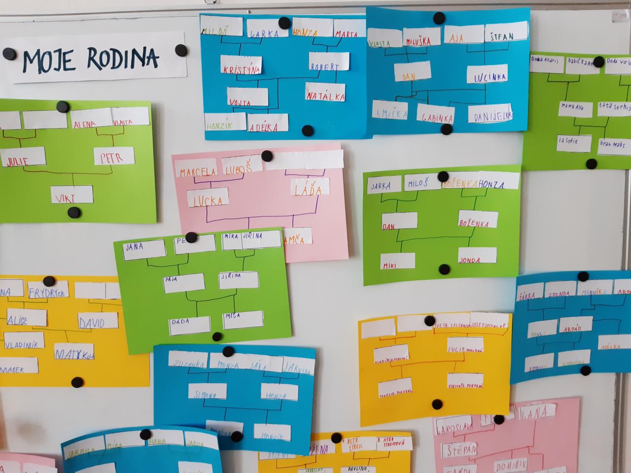 V květnu slavíme také Den rodin. Vedeme rozhovory o rodině, sourozencích, prarodičích…, poté si děti zakreslily své nejbližší do jednoduchého rodokmenu, navzájem si ukázaly fotografie svých rodin, v pracovních činnostech si jednotlivé členy rodiny ztvárnily. Pozvolna jsme přešly k tématu Můj dům. Nejdříve děti popisovaly svůj dům a místo, kde bydlí s rodiči. Později formou různých her a pracovních listů zjišťují, že domov je i Česká republika a vlastně celá naše planeta.