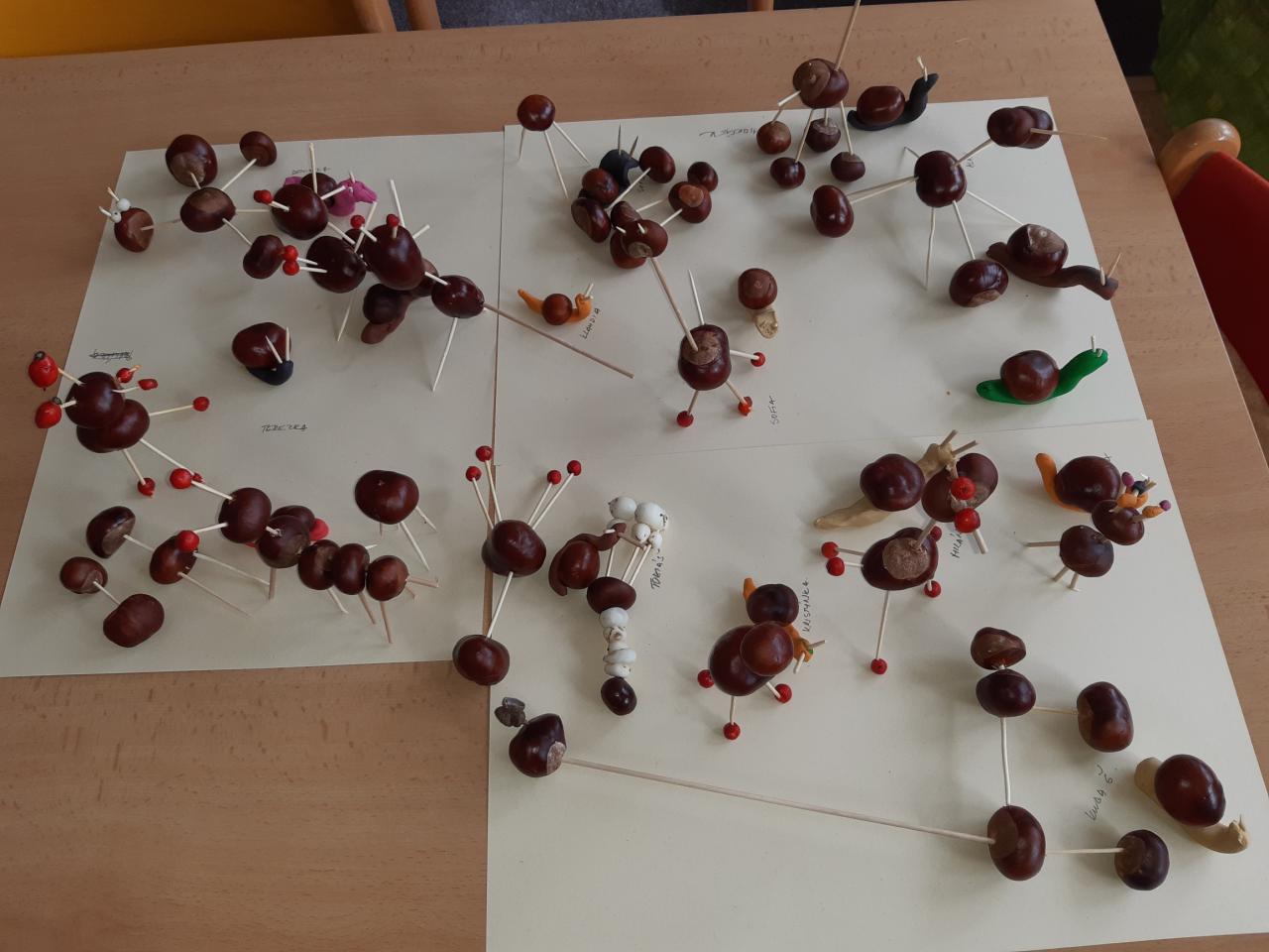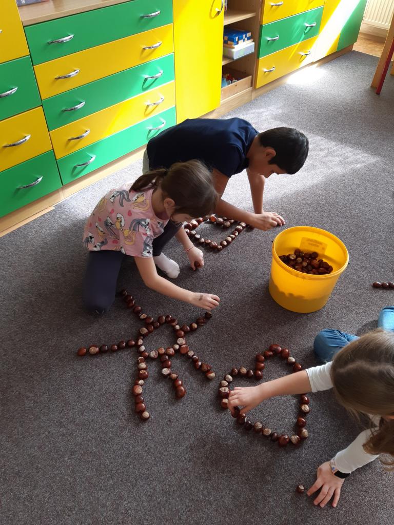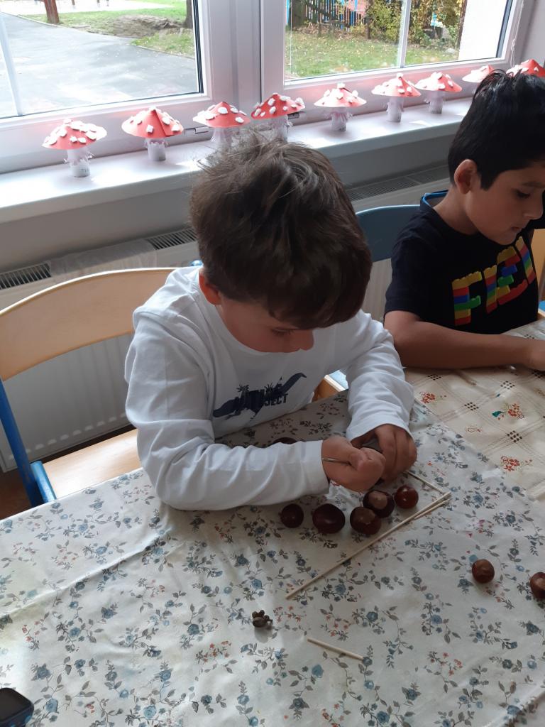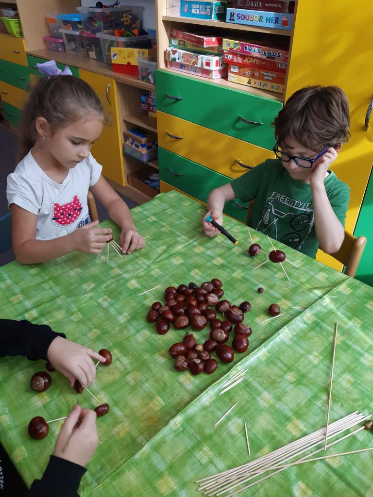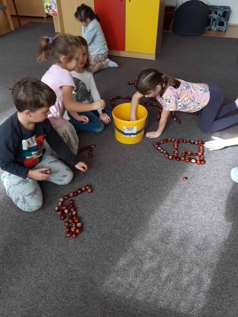 Na vycházkách jsme sbírali podzimní plody a listy, které využíváme k dalšímu tvoření.