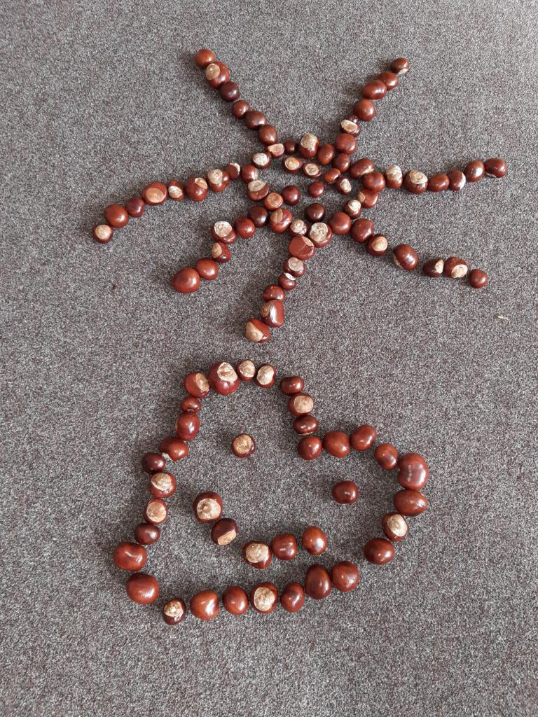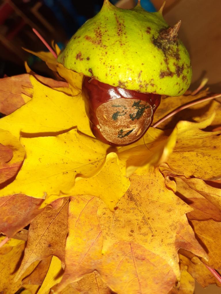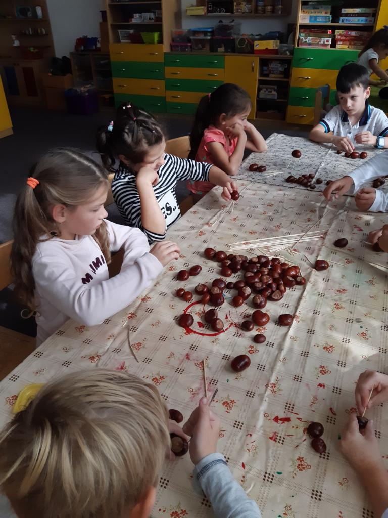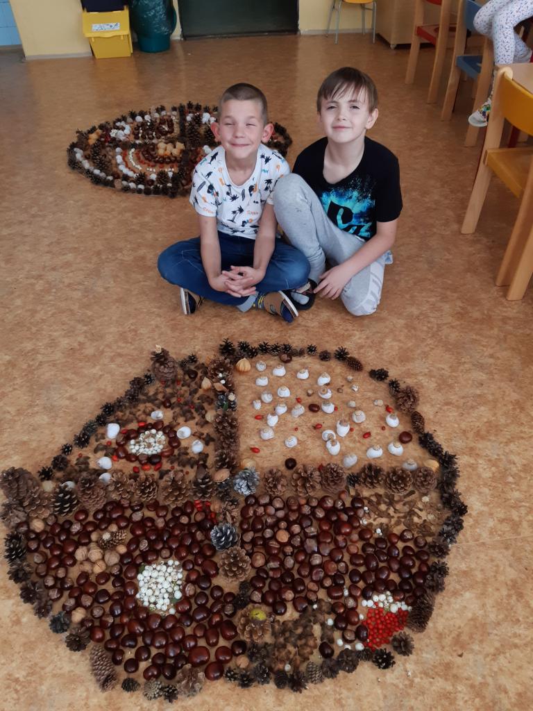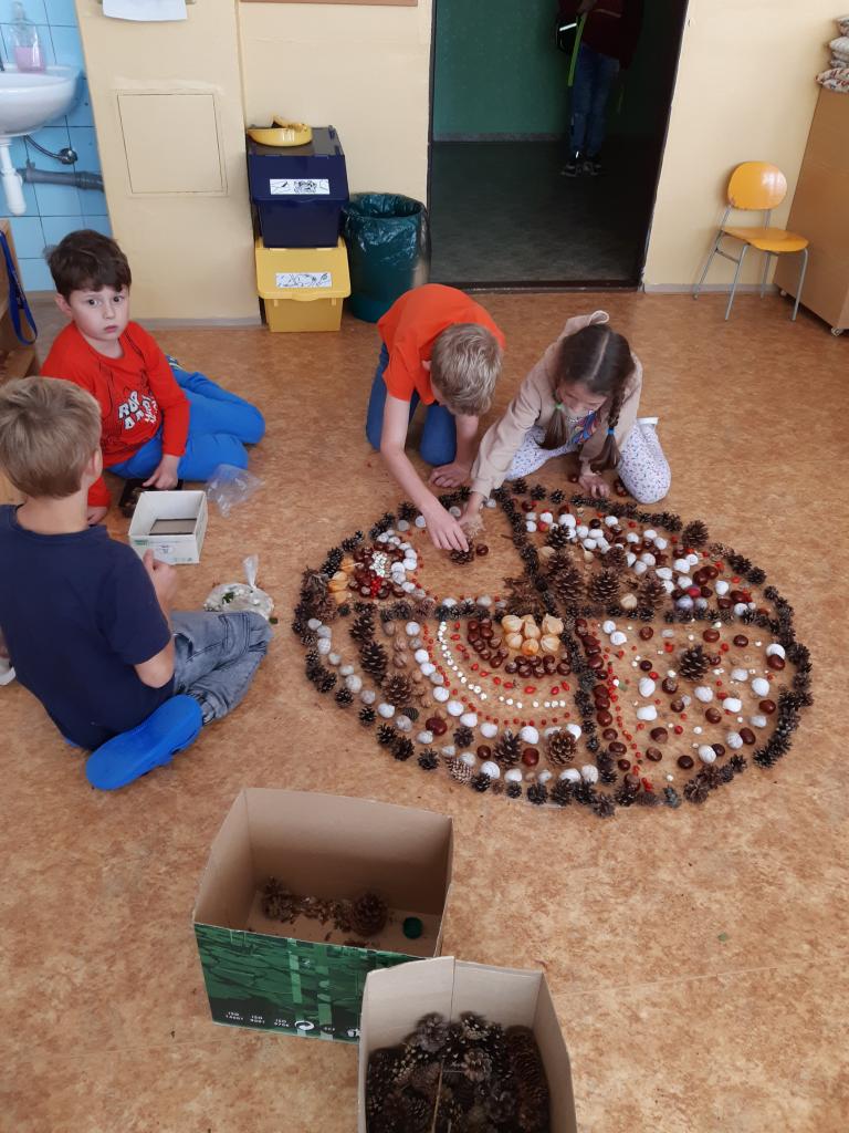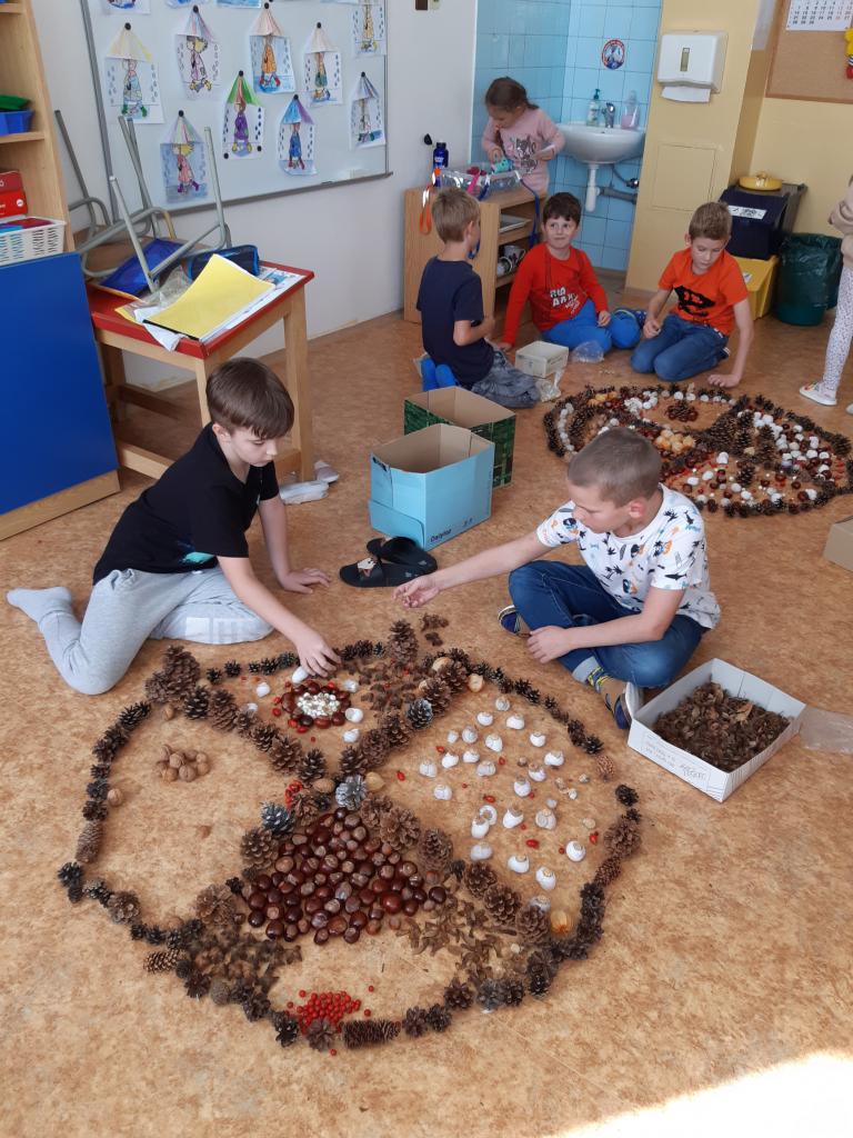 Děti z I. oddělení vytvořily nádherné podzimní mandaly, skřítka Podzimníčka , skládaly obrazce z kaštanů… Barevný podzim vyjádřily i výtvarně.