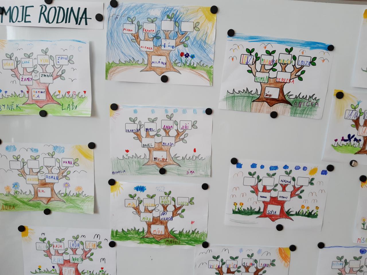Děti malovaly svou rodinu, jednoduché rodokmeny, prohlédly si navzájem své nejbližší na fotografiích, popisovaly svůj dům a pokoj.