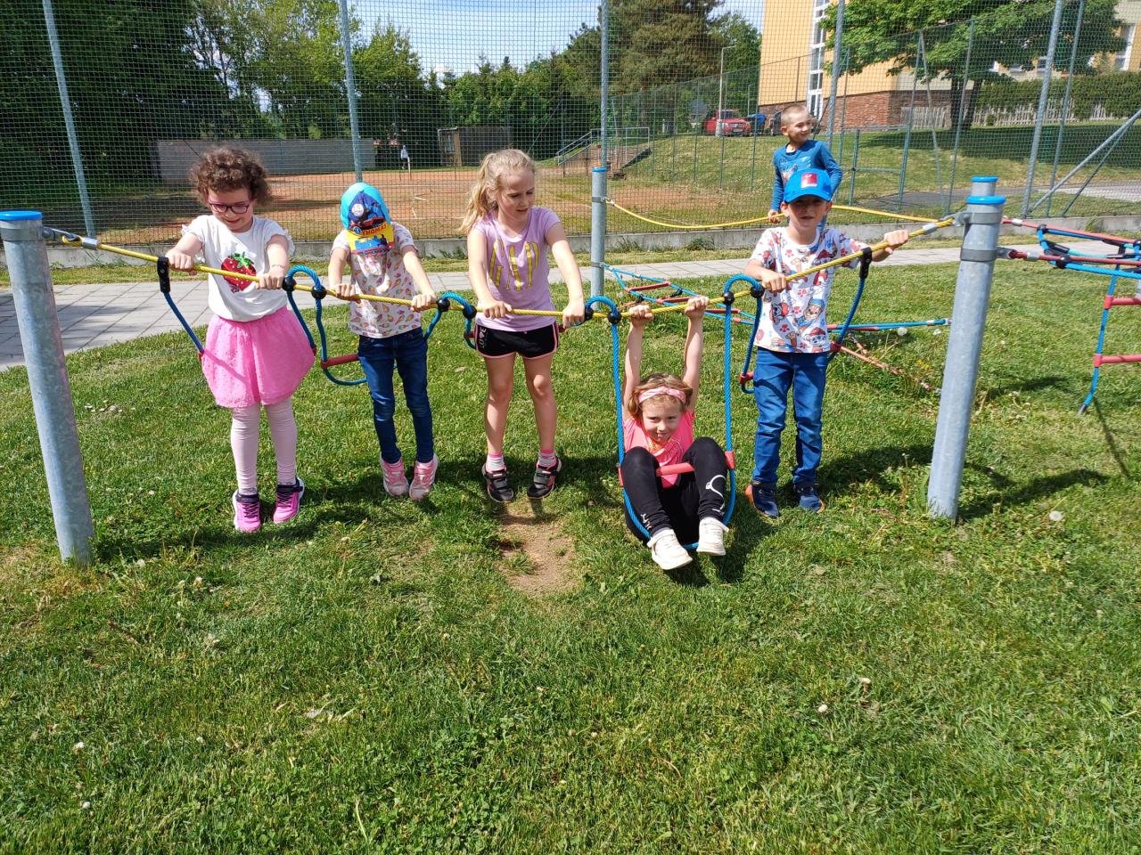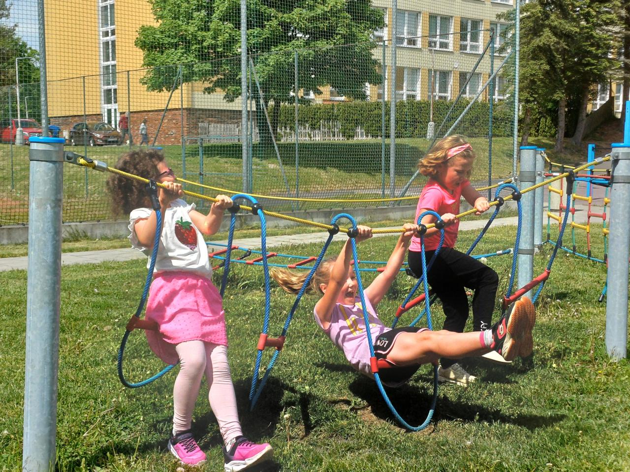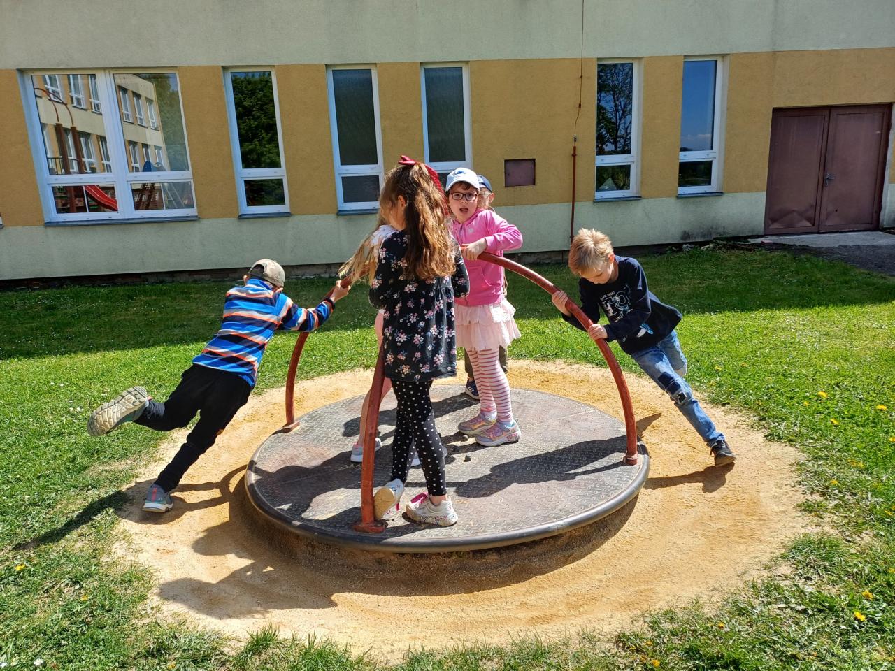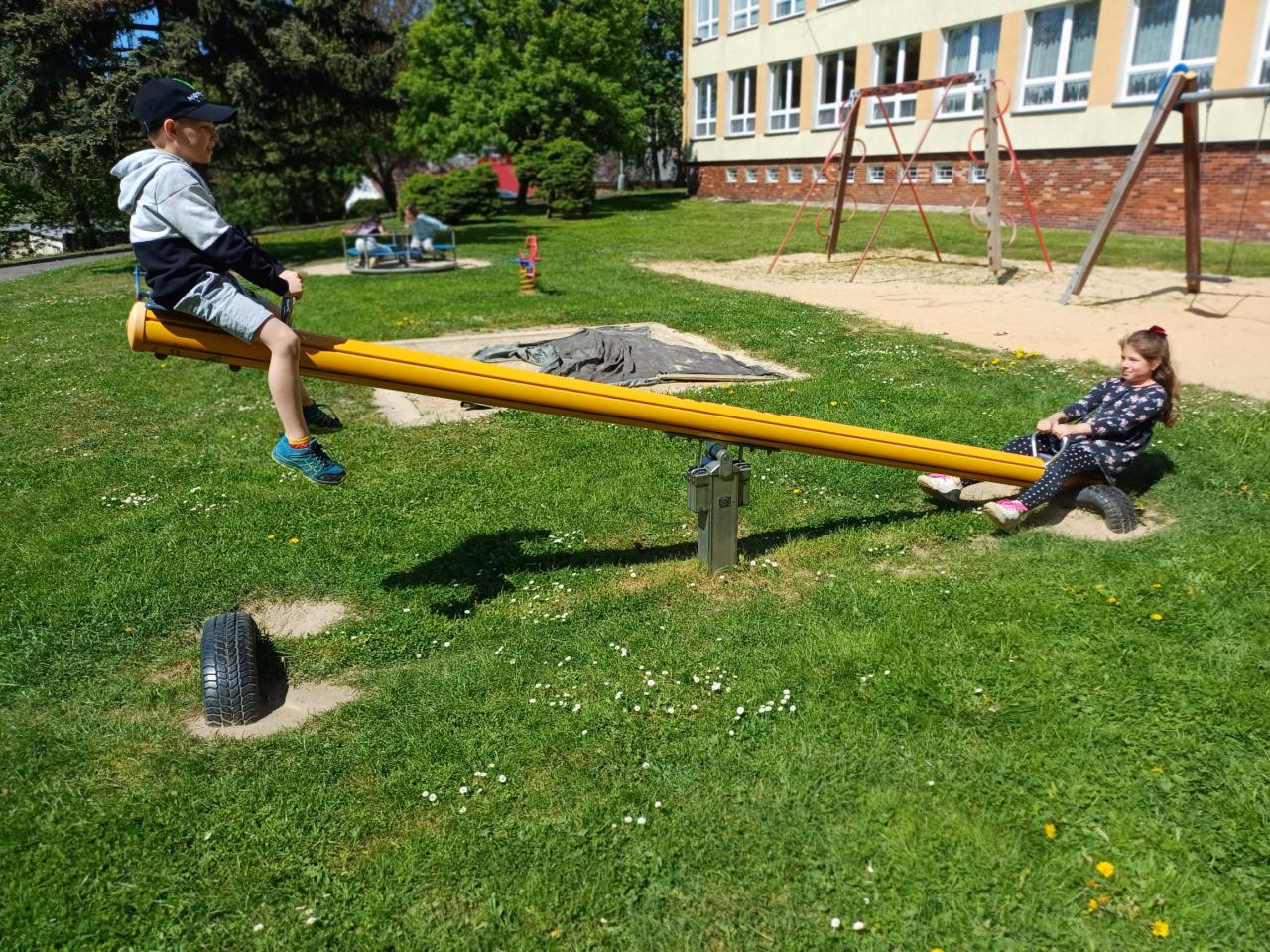 Když nám přeje počasí, chodíme ven a využíváme k hrám školní hřiště.