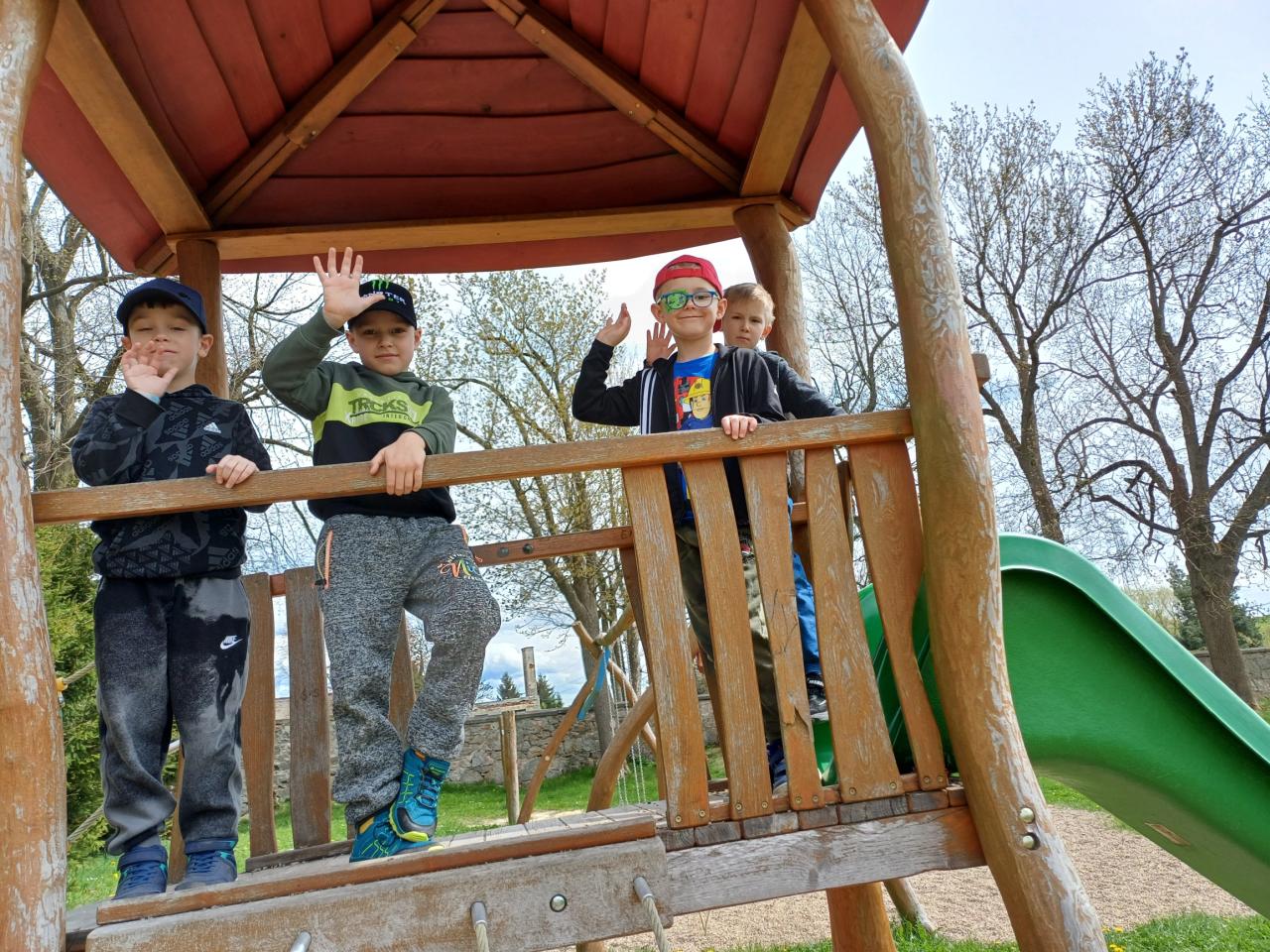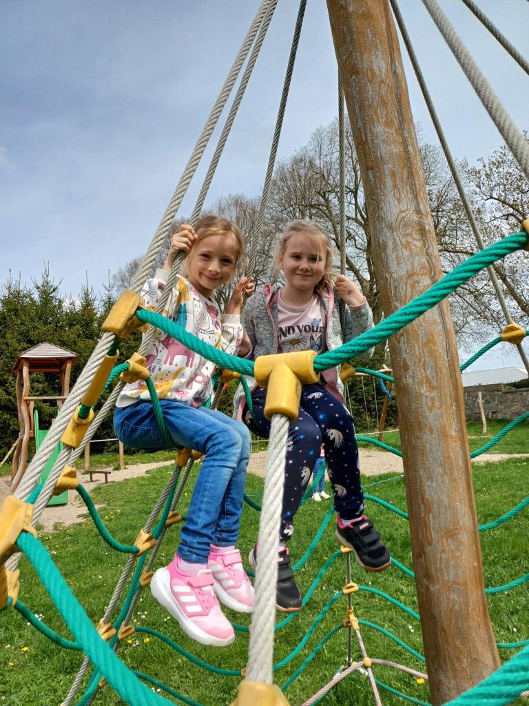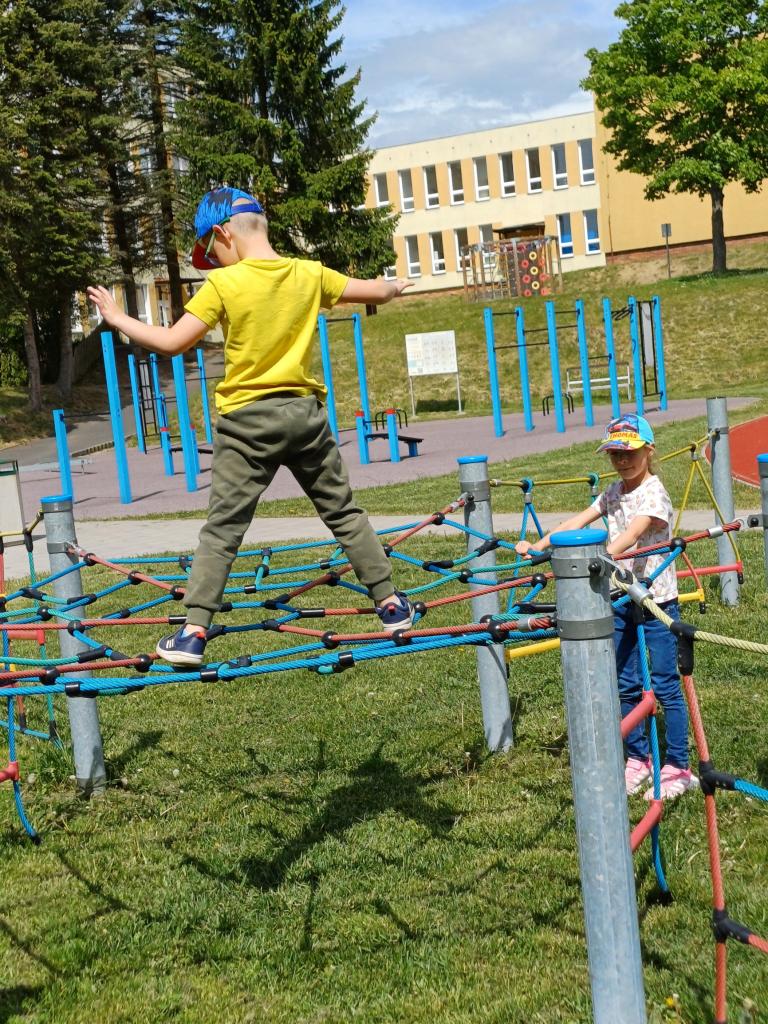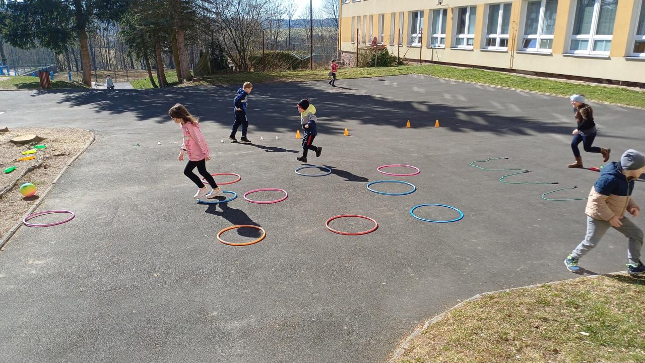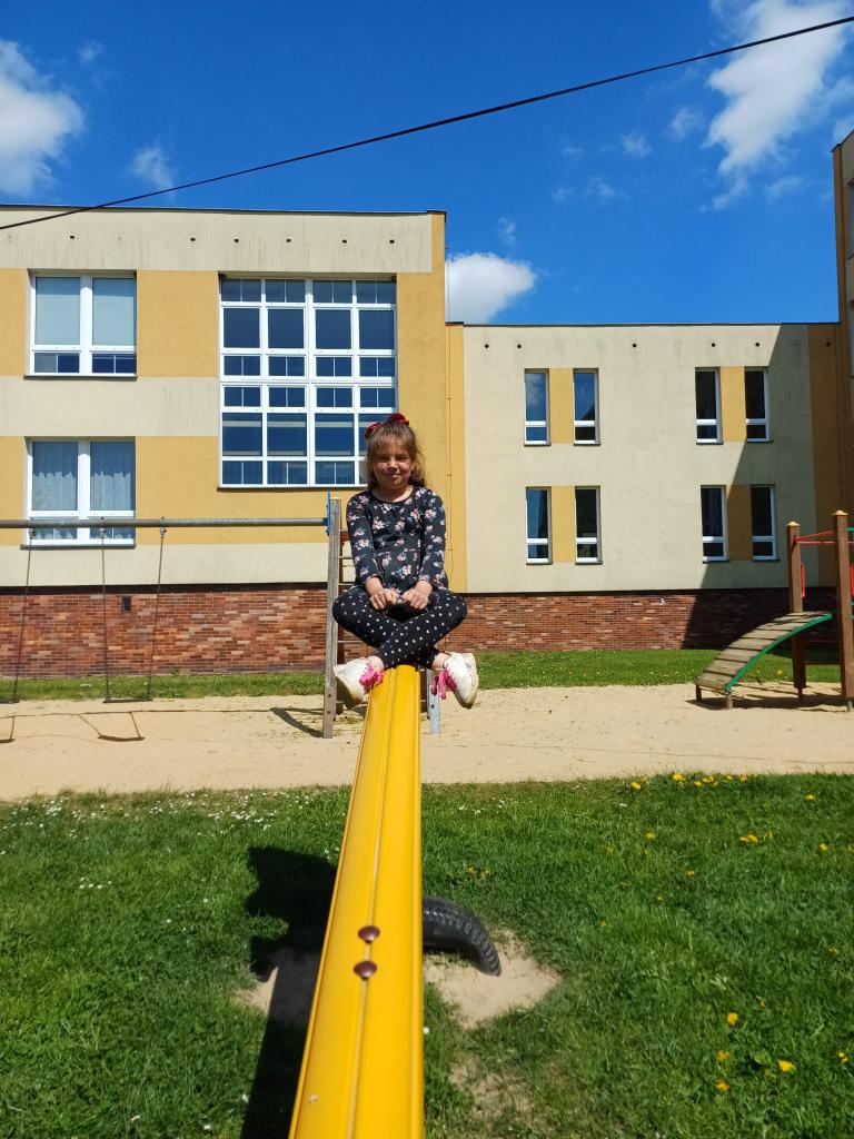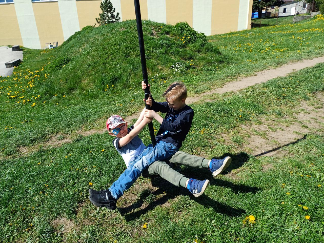 Když nám přeje počasí, chodíme ven a využíváme k hrám školní hřiště.