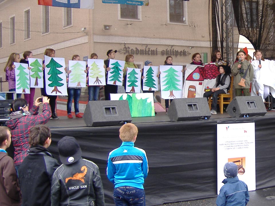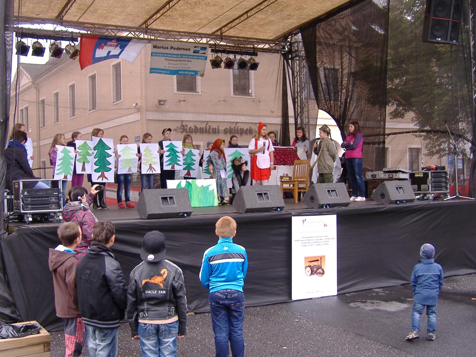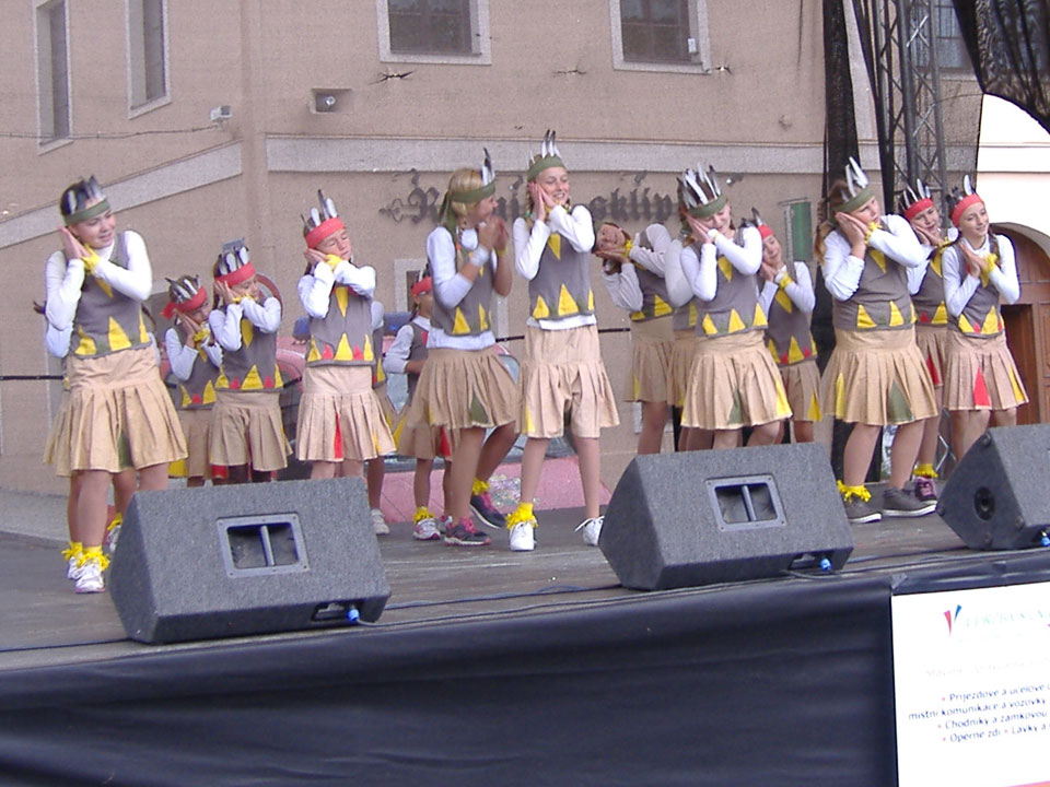 V sobotu 21. září se na náměstí konal další ročník městského jarmarku. V jeho kulturní části vystoupili i naši žáci. Nejprve pod vedením paní učitelky Jitky Rehákové a slečny učitelky Kristýny Klasové předvedli „rockovou operu“ Karkulka. Kvalitou zpěvu zaujala zejména Bára Danišová v roli Karkulky, ale úžasné byly všechny děti. Všechny mile překvapily a aplaus po skončení tomu odpovídal. Pak se na pódiu objevila děvčata z kroužku aerobiku vedeného paní Olgou Vonšovskou a paní Ivanou Otáhalovou. Indiánské kostýmy jim ušila paní Kateřina Krejčová. Několik dětí pak ještě vystoupilo v rámci programu ZUŠ Žlutice. Všechny vystupující děti dokázaly, že se dobrých výsledků dá dosáhnout i v podmínkách malých venkovských škol.
