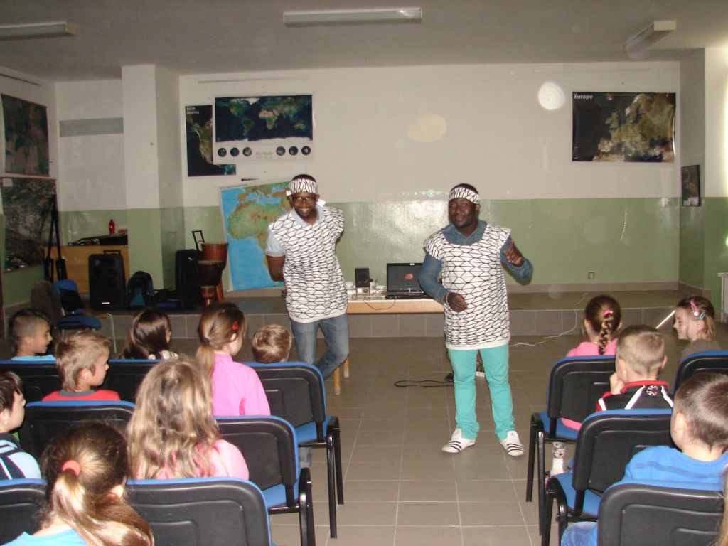 V pátek 15. května nás navštívili dva "kluci" z Afriky (žijící však trvale v ČR), aby nás seznámili s tímto kontinentem a předvedli nám (žákům I.st.) něco z afrického folklóru. Jejich pořad TAMTAM Afrika byl hlavně o hře na domorodé bubny, ale třeba i o afrických tancích.