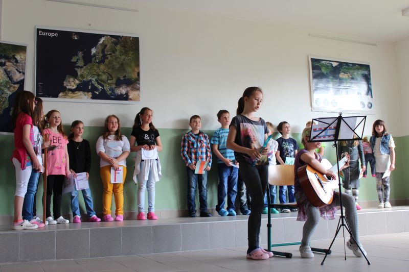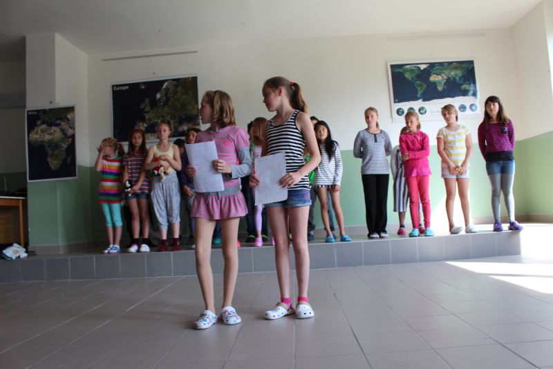 Na pátek 13. května pozvali žáci I. stupně do společenského sálu svoje maminky, aby jim přáli ke Dni matek. Každá třída nacvičila se svou třídní učitelkou krátké pásmo písniček a různých vtipných scének (O veliké řepě, parodie na Polednici....). Třídy se na pódiu vystřídaly v pořadí od první po pátou a na závěr se konalo společné finále s písní Malé kotě. Protože kromě maminek přišli i další rodinní příslušníci, byl sál úplně plný. Poděkování za příjemnou hodinku patří především účinkujícím dětem, ale neméně i jejich učitelkám, které s nimi celé pásmo připravily (p. Šenkýřová, Hulínská, Černá, Staňková, Michňová). Přiložené fotografie pořizovala žákyně IX. třídy Kateřina Moravcová.