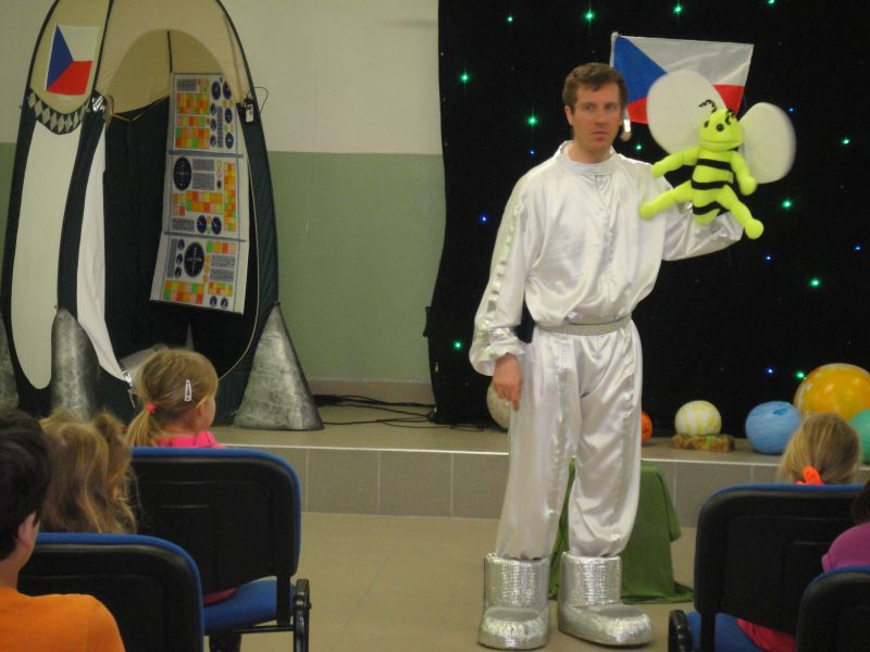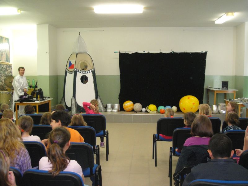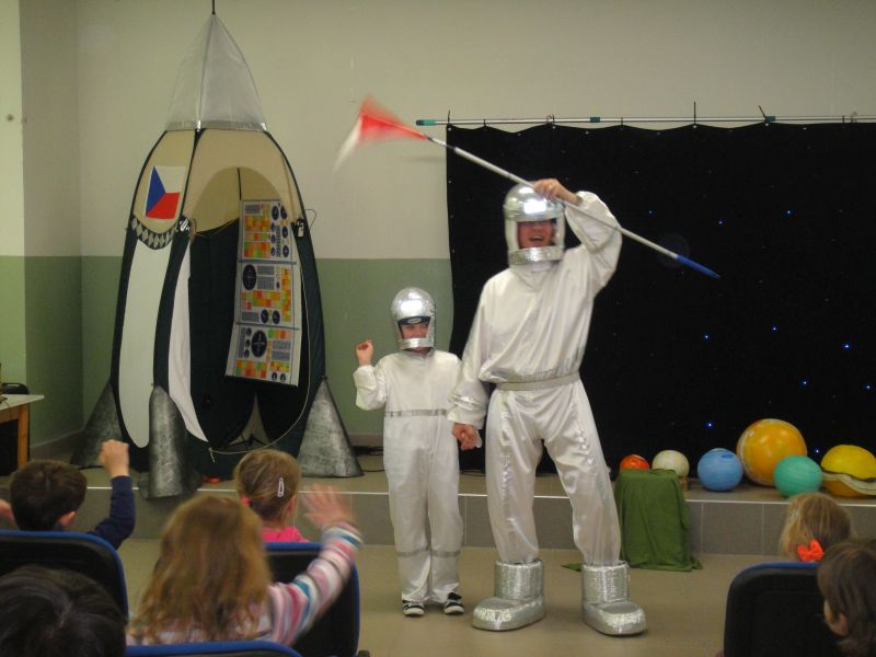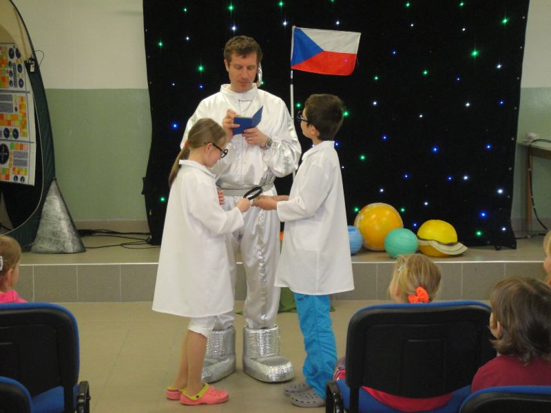 Dne 22.4.2016 k nám zavítalo divadlo Letadlo. Děti 1.- 4.ročníku zhlédly představení „Do vesmíru“. Zahrály si na objevitele neznámé planety a zkoumaly vzorky jejího povrchu, potkaly se s Ufobroukem, řídily kosmickou loď, převlékly se za jednotlivé planety a zjistily, jak funguje naše Sluneční soustava. Představení bylo hravé, plné písniček, se skvělými kulisami a sklidilo velký úspěch.