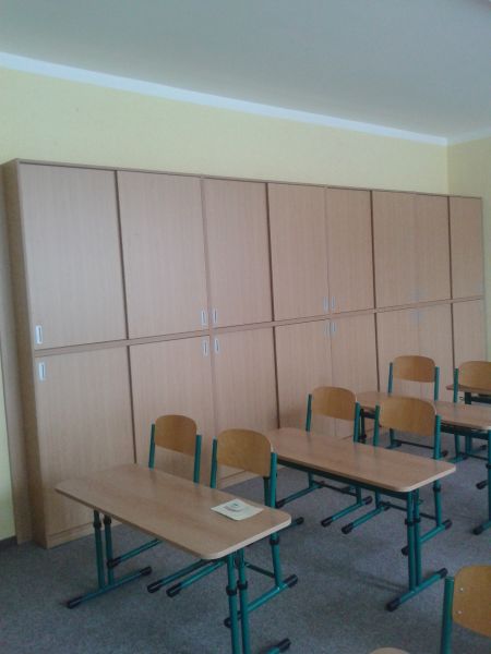 I když se snažíme postupně obměňovat vybavení budovy (byly vyměněny žákovské stolky a židle, jídelní sety v jídelně...), je stále většina nábytku z doby otevření školy, tedy z roku 1980. A přestože vydržel takovou obdivuhodnou dobu, pomalu dosluhuje a rozpadá se. Sáhli jsme proto do rezervního fondu a nechali zkusmo vyrobit na zakázku skříňovou stěnu, která pojme veškeré pomůcky, žákovské kufříky a další "haraburdí", které je k výuce potřebné. Výhodou skříně je, že nejen pojme vše, co je třeba, ale zatažením dvířek je rázem ve třídě "uklizeno". Stěna byla namontována během jarních prázdnin ve II. třídě u p. učitelky Hulínské. Postupně bychom takto chtěli vybavit všechny třídy na prvním stupni. V nejbližší době nás ale čeká i výměna podlahy před jídelnou, kde došlo ke stejnému problému jako ve vstupní hale - dlažba se tzv. "odfoukla" a dlaždičky postupně odpadají tu v menším, tu ve větším počtu, ale pravidelně.