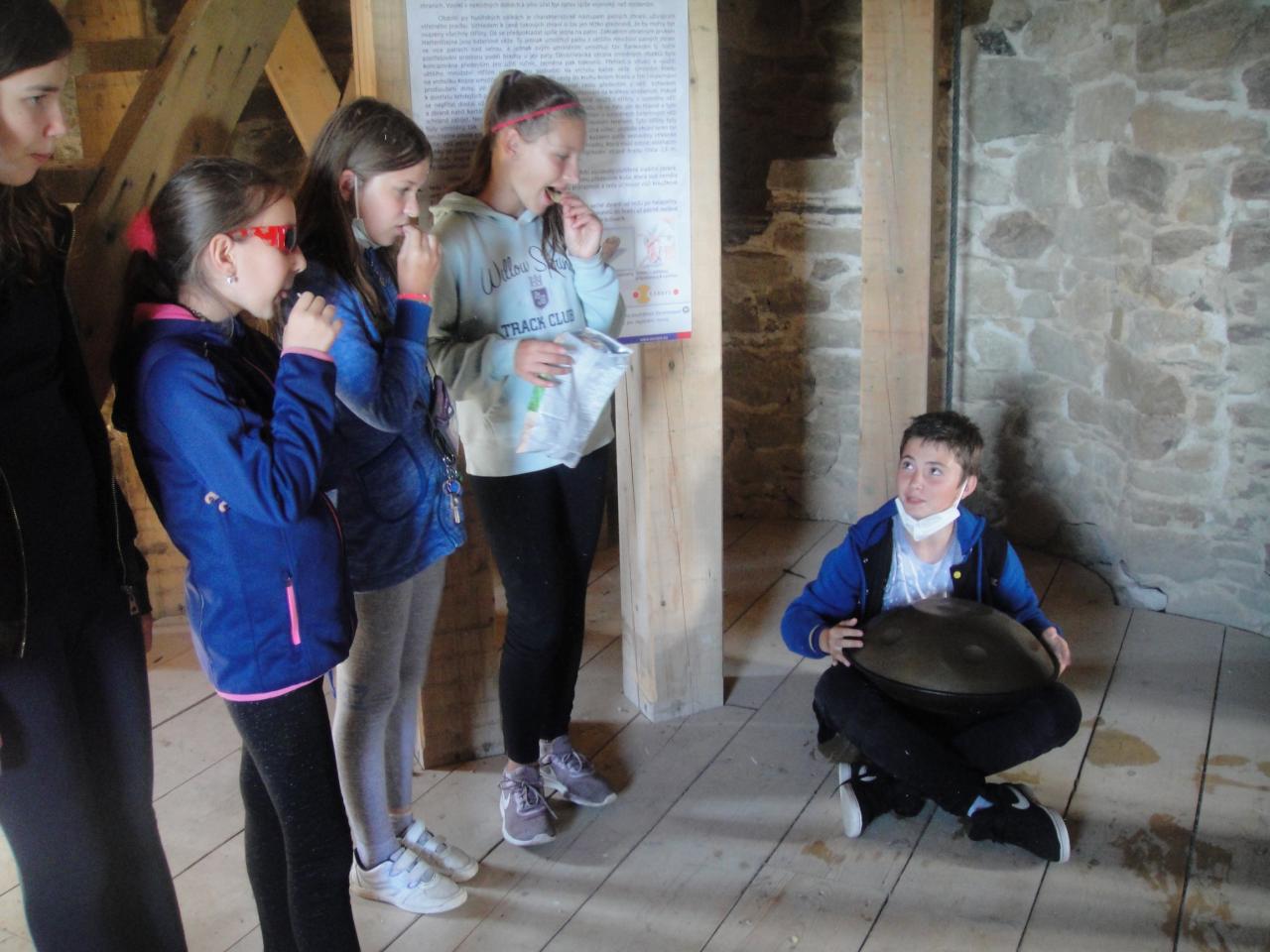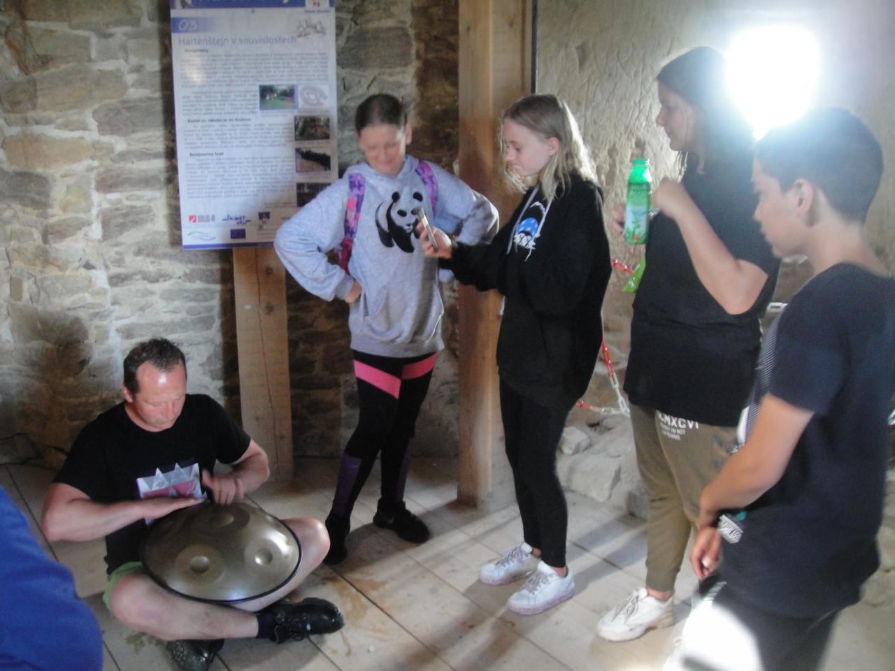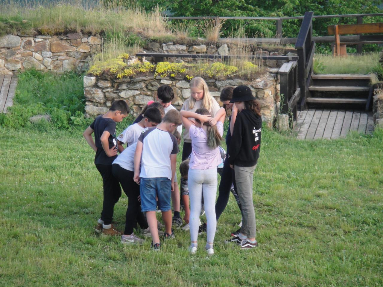 Ve čtvrtek 24. 6. jsme se vydali naposledy na společnou akci na 1. stupni. Čekalo nás opékání vuřtů a hry v areálu bochovského hradu Hartenštejn. Cestu nahoru nám znepříjemnil a ztížil prudký liják a bouřka, přesto všichni statečně doputovali až na místo. Úplně promočení jsme nedočkavě vyhlíželi sluníčko, které nás vyslyšelo a po chvíli se na nás začalo usmívat. Stihli jsme uschnout, podařilo se nám rozdělat oheň, opéci si dobroty, zazpívat si i zahrát hry. O dobré náladě svědčí i úsměvy dětí na fotografiích. Poděkování patří tatínkovi, který nám pomáhal, rodičům, kteří nás později na hradě také navštívili, a naší Ádě, která zajistila klíče od hradu.