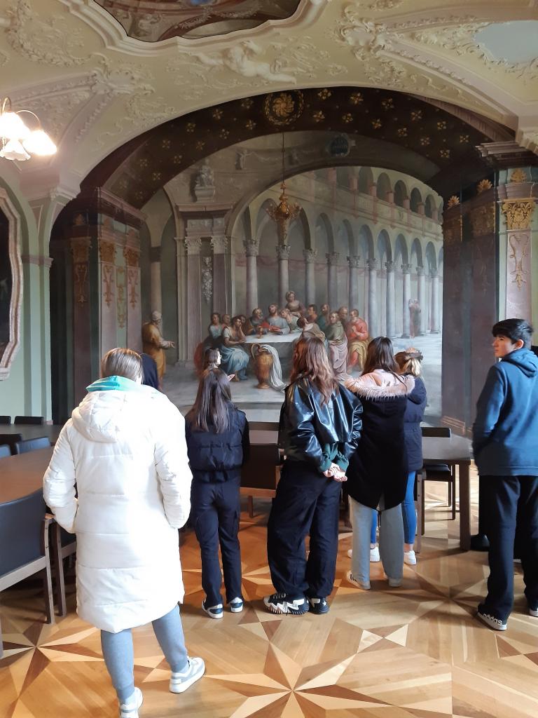 V rámci projektu vzdělávání dětí a mládeže v kultuře vyrazili 20. dubna žáci IX. třídy do kláštera premonstrátů v Teplé. Žáci se seznámili s tím, kdo byli a jak pracovali dávní malíři, kteří zdobili stěny kláštera. Naučili se jak „číst“ staré nástěnné malby a rozumět jim, vnímat malbu nejen jako dekoraci. Na závěr si vyzkoušeli práci staré malířské dílny a společně výtvarně ztvárnili obraz Poslední večeře.