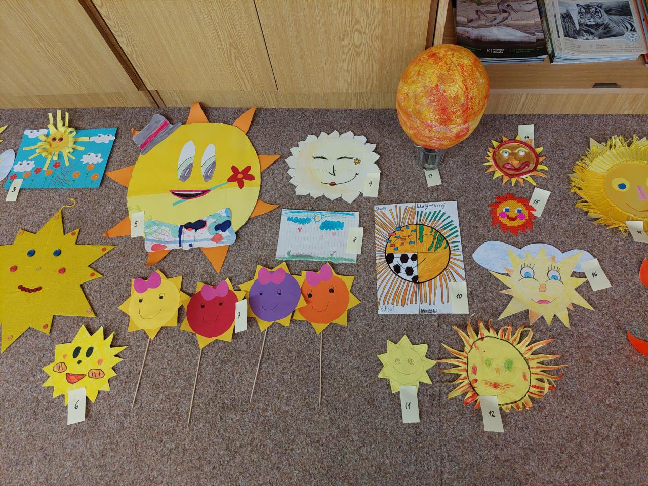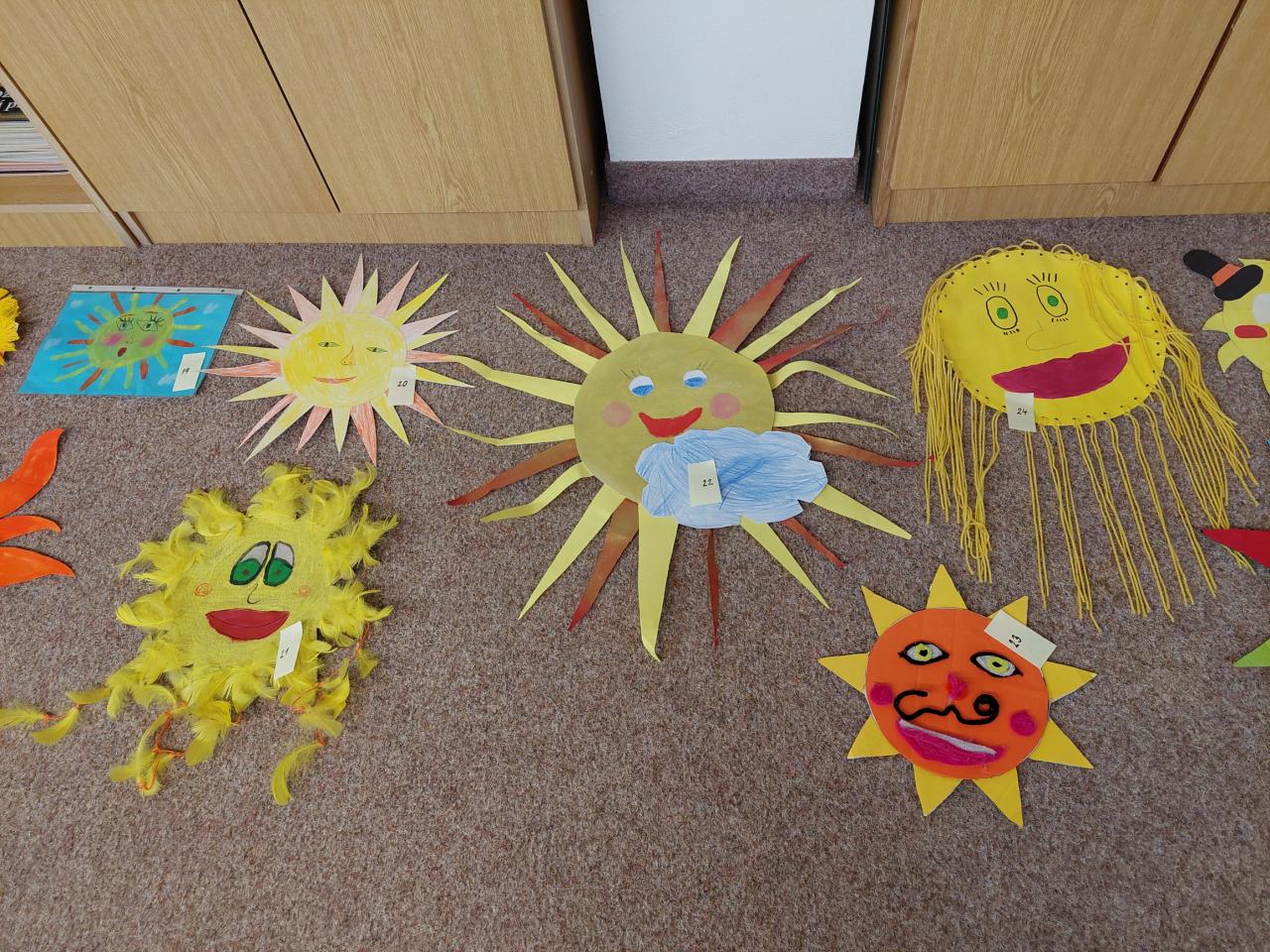 V březnu děti z „PŘÍPRAVKY“ a z I. STUPNĚ vytvářely sluníčka do výtvarné soutěže. Vytvořily krásných 32 sluníček z různých materiálů. Nejvíce se zapojily děti z „přípravky“. Sluníčka částečně vyráběly se svými rodiči, což velmi chválíme. Rodiče tímto podporují děti ve výtvarném tvoření a zároveň s dětmi tráví čas. Sluníčka hodnotili učitelé. Bylo velmi těžké rozhodnout o prvních třech místech. Svými hlasy vybrali 10 sluníček – tedy deset prvních míst. Všechna sluníčka byla moc hezká a ozdobíme si s nimi chodbu, ať nás těší po celý rok.